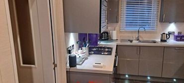 The kitchen has everything you need from dishwasher to air fryer. Cooker with gas hobs and built in microwave.